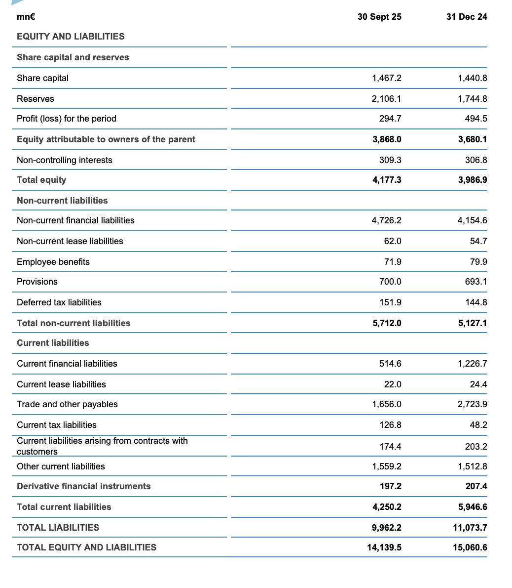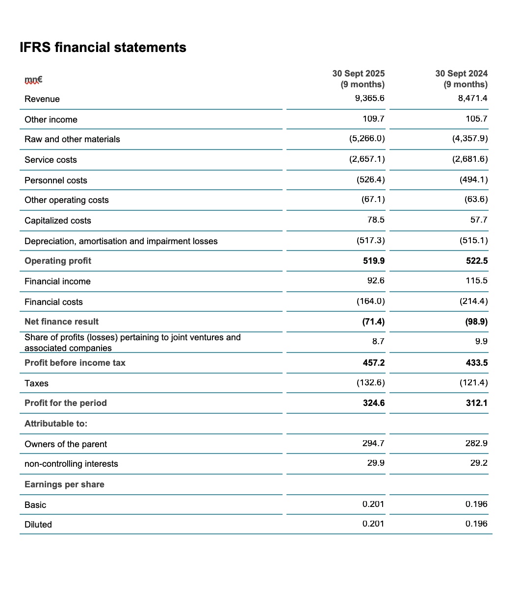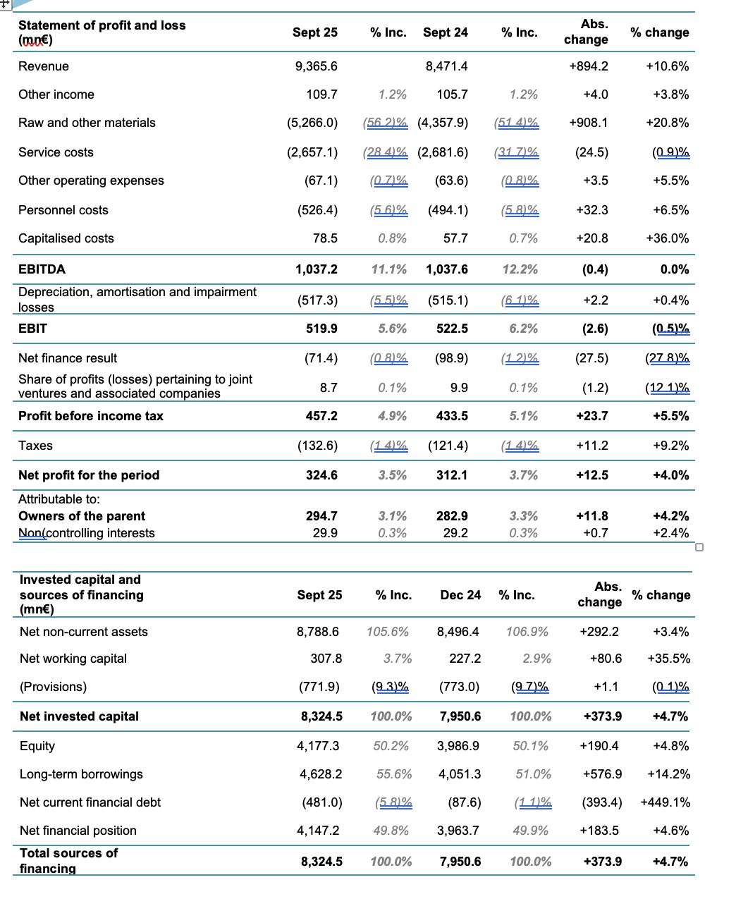Despite the increased tax rate, at 29% (vs 28% the previous year), net profit at 30 September 2025 reached 324.6 million euro, up 4% compared to 312.1 million euro in the same period of 2024. At the same time, net profit attributable to Group Shareholders also grew, reaching 294.7 million euro (+4.2% compared to 282.9 million euro at 30 September 2024).