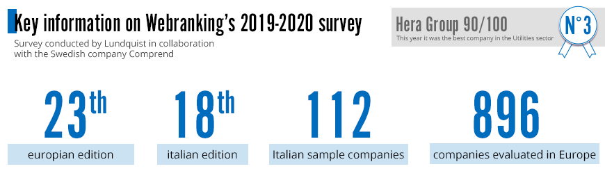 In the Webranking 2019 report on Italian digital communication conducted by Lundquist, in collaboration with Comprend, the Hera Group wins the third position distinguishing itself by the detailed view of the company and its activities and for the completeness of the web site sections focused on sustainability