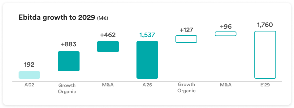 The 2025-2029 Group business plan targets a 2029 “shared value” EBITDA of about 1.2 billion euro, equal to 68% of the Group's overall EBITDA.