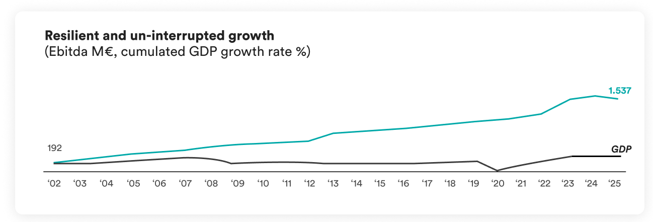 In this way, the Group has been able to overcome all adverse macro-economic, political and regulatory conditions seen along its path, from 2002 to today.