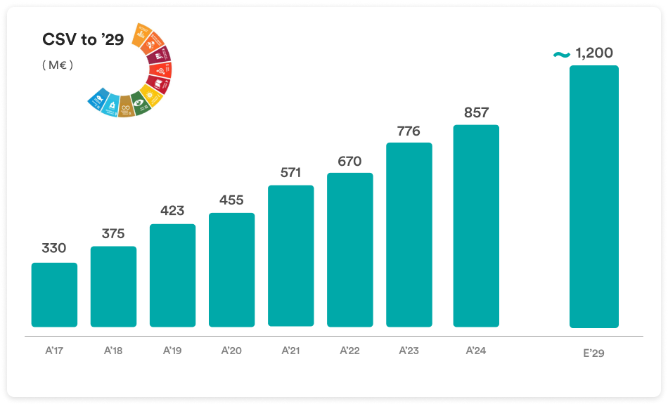 In line with this expected growth, CSV EBITDA for 2025 amounted to 915.6 million euro (60% of the Group's total EBITDA), a 7.4% increase compared to 2024 CSV EBITDA.