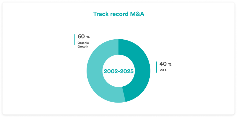 Hera's history demonstrates the effectiveness of the model for expansion that has allowed the Group to quintuple its size over 20 years, since its establishment, with a significant contribution coming from M&As (40% of growth created with M&As).