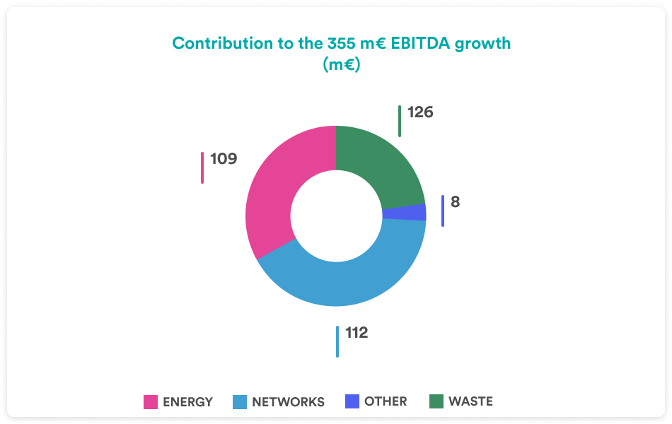 As a result of these actions, planned investments, including M&A, and the reinvestment of all cash flows generated by the business, EBITDA in the Waste area is expected to grow at a CAGR of 7% over the 2023-2027 period. Almost 40% of the five-year growth of 126 million euro will be driven by acquisitions, while the remaining part will come from organic growth.